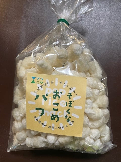 栽培期間中農薬不使用化学肥料不使用の兵庫県の農家さんのお米でつくったお米のパフです。